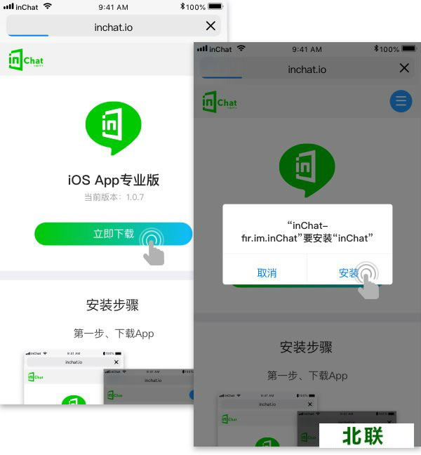3、iOS苹果手机 苹果手机下载的流程也不算复杂,只是要选择信任“inChat”。 (1)下载APP