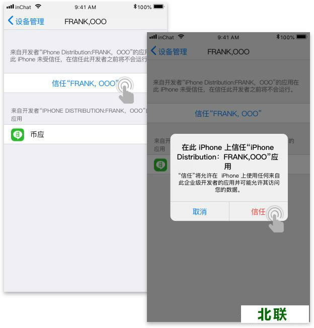 (2)信任应用 设置 > 通用 > 设备管理,点击证书选择信任