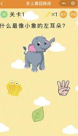 但是玩家要注意审题,题目说的是什么最像小象的左耳朵,为什么说是左耳朵而不是耳朵呢?这里就是一个陷阱。