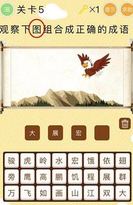 成语是大展宏图四个字,看上去非常地简单,但是仔细观察以后发现给出的选项当中没有大展宏图的图这个字,这就很尴尬了。
