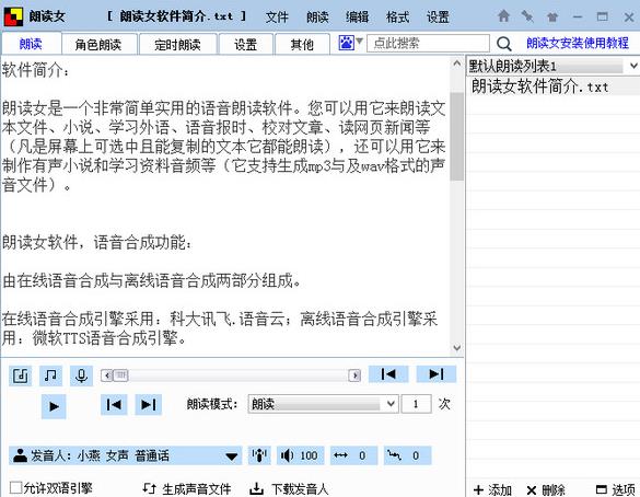 朗读女语音朗读软件下载_最新绿色版免费提供下载 >>本地高速下载