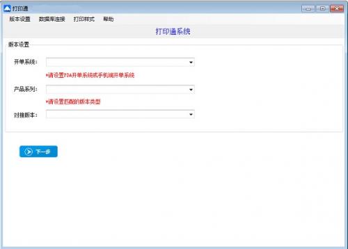 待帐套建立完毕后,重新运行打印通程序。,并“设置数据库”,选择对应接口版本的数据库。