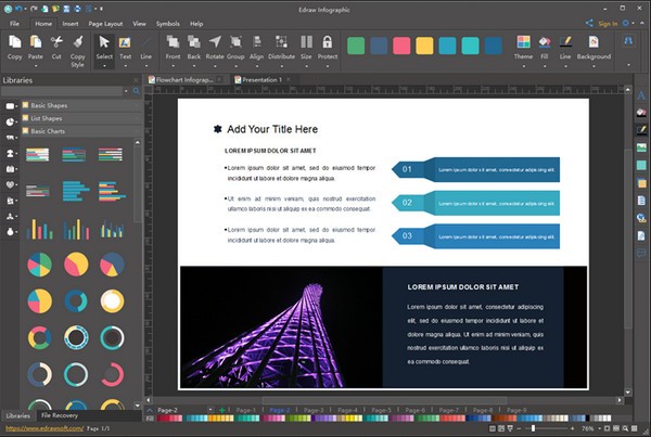 亿图信息图软件是一款集信息图,海报,传单,彩页,杂志,证书,板报,宣传册等设计于一身的图文设计软件,有windows、mac、linux多平台客户端,通过简单的拖拽填写就可以设计完美的信息图,PPT,海报传单宣传册。