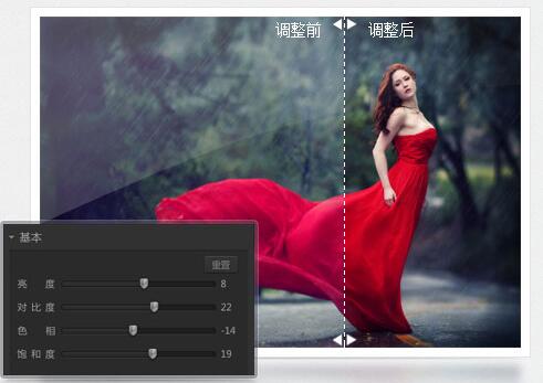 拥有自动曝光、数码补光、白平衡、亮度对比度、饱和度、色阶、曲线、色彩平衡等一系列非常丰富的调图参数。最新开发的版本,对UI界面进行全新设计,拥有更好的视觉享受,且操作更流畅,更简单易上手。无需PS,您也能调出完美的光影色彩。
