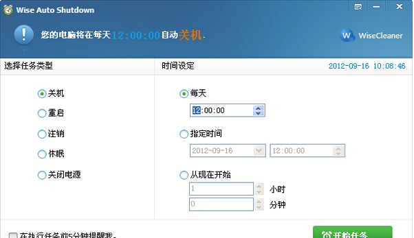 Wise Auto Shutdown 这款免费 的自动关机设定软件,你只要设定好时间,就会指定的时间内关机,还支持提前提醒!