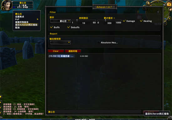 Acheron死亡原因报告插件,监视所有你周围的玩家,目标的死亡原因,和死亡前的治疗情况,并生成死亡原因报告通报到小队,团队或者密语等频道,适用于团队分析灭团原因,玩家出错死亡原因等。右键点击目标头像显示死亡报告选项或"/Acheron show"来查看死亡报告。