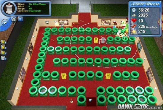 "博物馆守卫战"是Davidbhowe开发策略游戏,在国外2005年小游戏的评选中,它获得最佳创新游戏的第三名。游戏的主题是一群现代艺术品要攻占博物馆的展位,作为喜爱古典艺术的博物馆长要利用各种设置阻止这些现代艺术品得逞。玩家每关要在短时间内配置好守卫的装置,阻止敌人的进攻,游戏有很强的策略性。