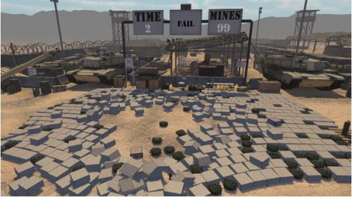扫雷VR(Minesweeper VR)将平面上点点点扫雷玩法搬到了酷炫的3D场景,玩家能够在真正雷区上排雷,体验工兵的危险。游戏支持HTV Vive设备控制器,包括经典和街机两种模式与三种难度。