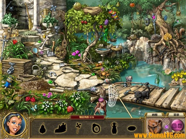 和同类游戏玩法类似,按照英文词条中显示的名称找出相应物品即可,包括蓄时的提示功能可以使用。