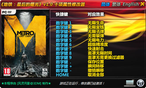 《地铁最后的曙光》v1.0十项修改器下载