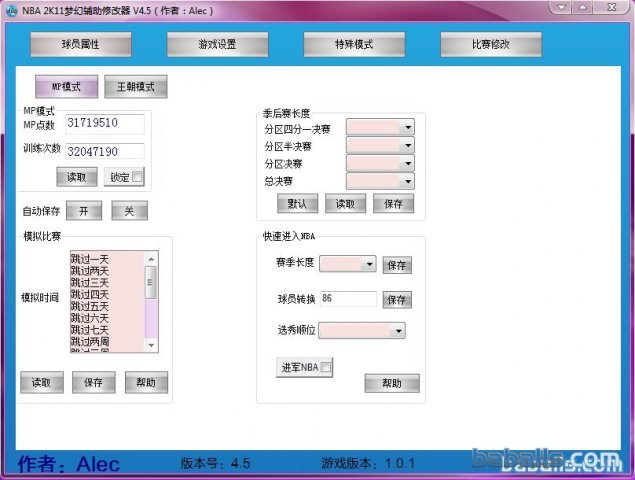 《NBA2K11》梦幻修改器V4.6.1版免费下载 >>本地高速下载