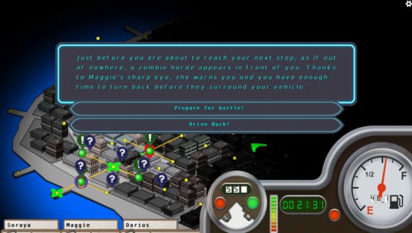 《僵尸启示幸存者》在游戏中你需要向东北方向触发,一路驾驶汽车驶出城市,在这一路上你会遇到其他幸存者,你可以招募他们让他们成为你的队员,为了到达目的地,你需要四处寻找食物,汽油,还有医疗用品,否则一旦发生意外,后果将不堪设想。