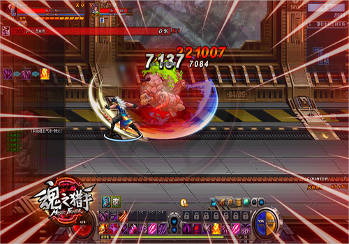 《魂之猎手》承继最经典街机游戏动作操作,融合硬直、浮空、拖拽、拳打脚踢、瞬间移动等要素,通过特色职业连招系统,配合特有的Hyper Air Flash Rush Skill(空中可以使用的技能)更容易组合出华丽的空中连击。连招的低门槛和爽快感是MF在动作上最明显的差异化体验。