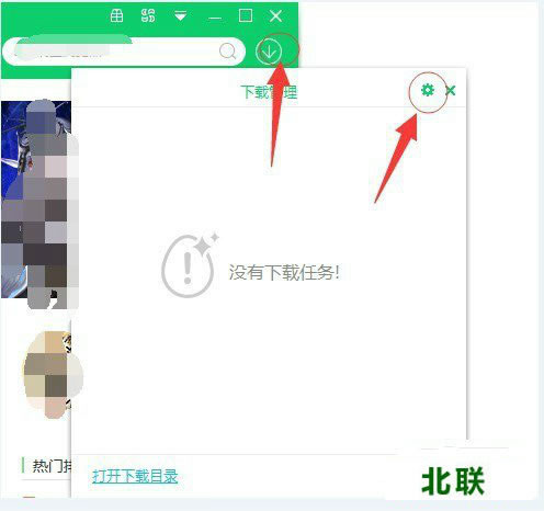 4. 如果要修改这个默认路径的话,可以点击如下图右上角的齿轮设置按钮,在下载设置中“选择目录”,重新选定一个保存的路径就可以了;