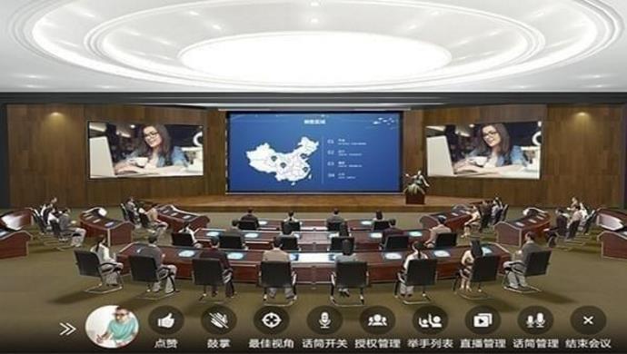 产品主要功能,在虚拟现实会议室内支持多人实时语音互动,直播画面可切换给任意参会者、虚拟投影共享多种格式文件资料、智能白板书写讲解、一键录音、一键转换文字会议纪要、全年会议数据管理等多项功能。可使用户在30秒内搭建一个会议,并通过手机短信或微信将会议信息送达参会人员。大大提高了企业的沟通协作效率。