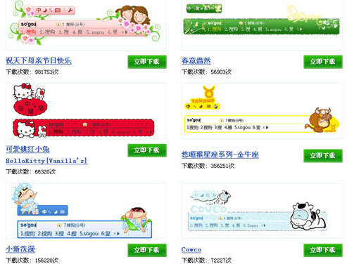4、界面美观:兼容所有搜狗拼音可用的皮肤,资源丰富