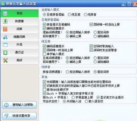 第三步:在搜狗五笔输入法设置对话框中,第二项是快捷键设置,这里还真是有问题。这里有一个临时切换拼音的设置,其中的快捷键设置的是左Ctrl,怪不得,平时 我爱用Ctrl和shift键来切换,所以就切换到了临时拼音。